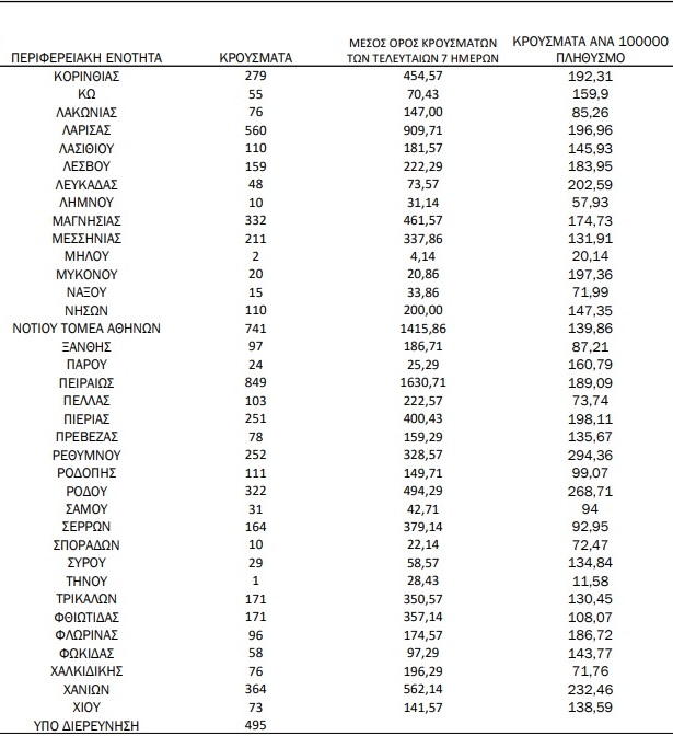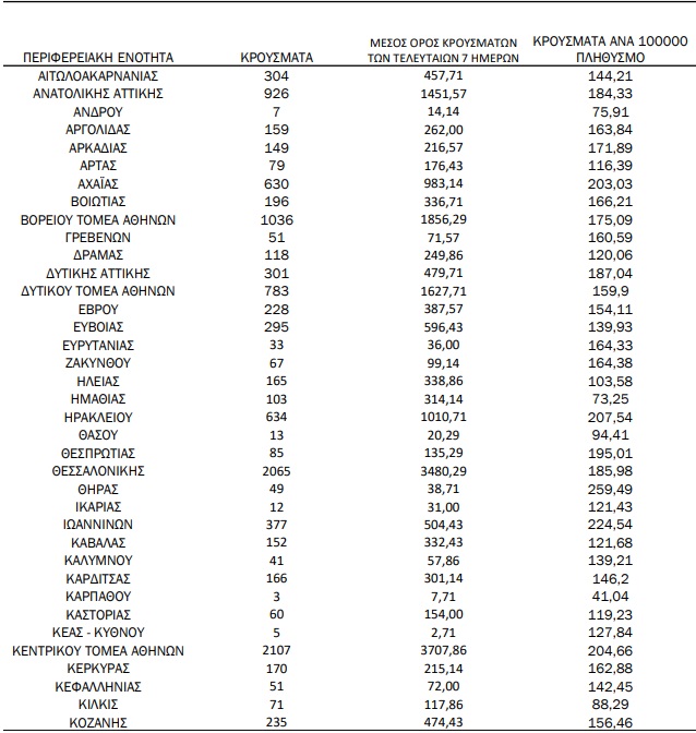 Δείτε αναλυτικά την κατανομή των κρουσμάτων ανά περιφέρεια: