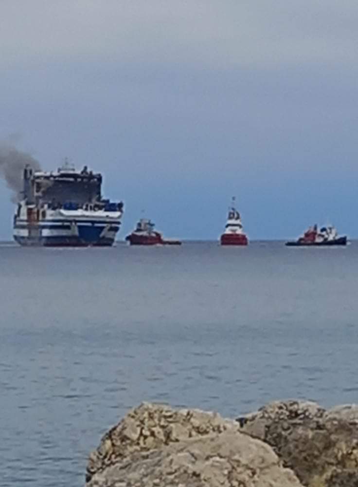 Το πλοίο έχει ρυμουλκηθεί σε ασφαλές σημείο στο βόρεια της Κέρκυρας ενώ και σήμερα γίνονται ρίψεις νερού σε περιφερειακά σημεία του πλοίου και όχι στο εσωτερικό του, προκειμένου να επιτευχθεί ψύξη αλλά και να μην διαταραχθεί η ευστάθειά του.