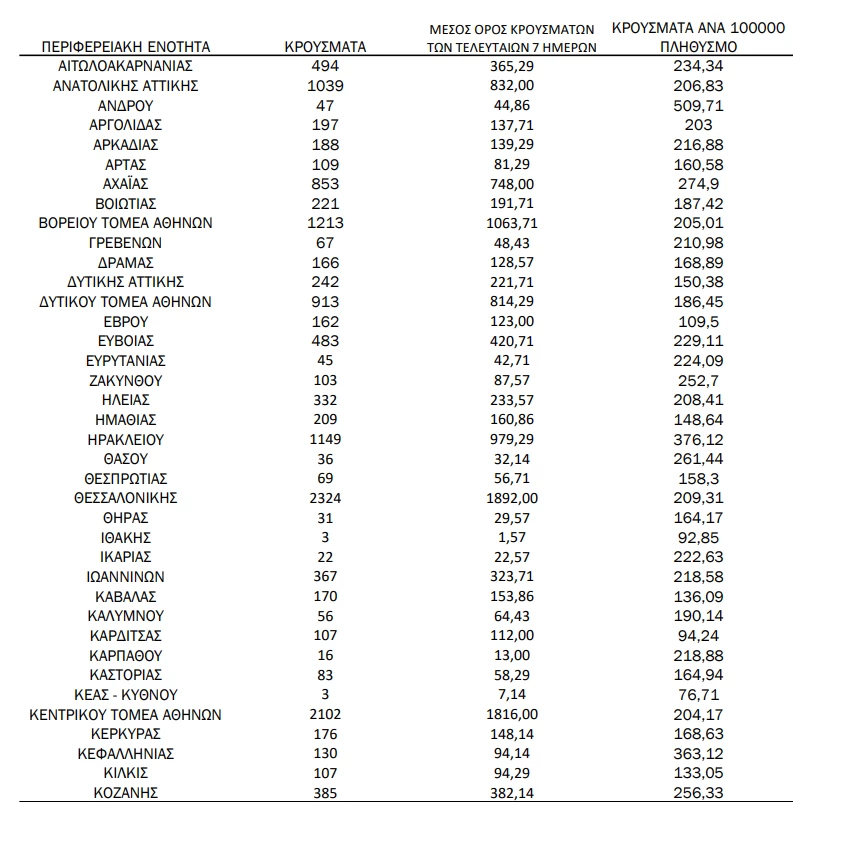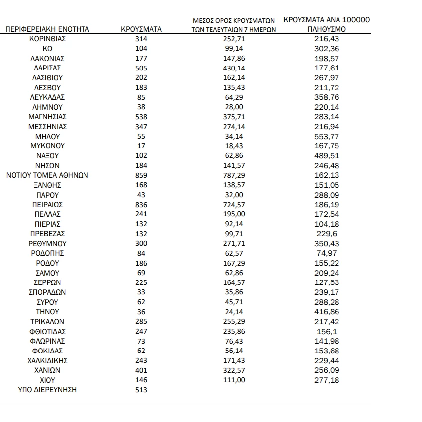 22.693 νέα κρούσματα, 70 θάνατοι, 364 διασωληνωμένοι -Ο «χάρτης» της πανδημίας στην Ελλάδα