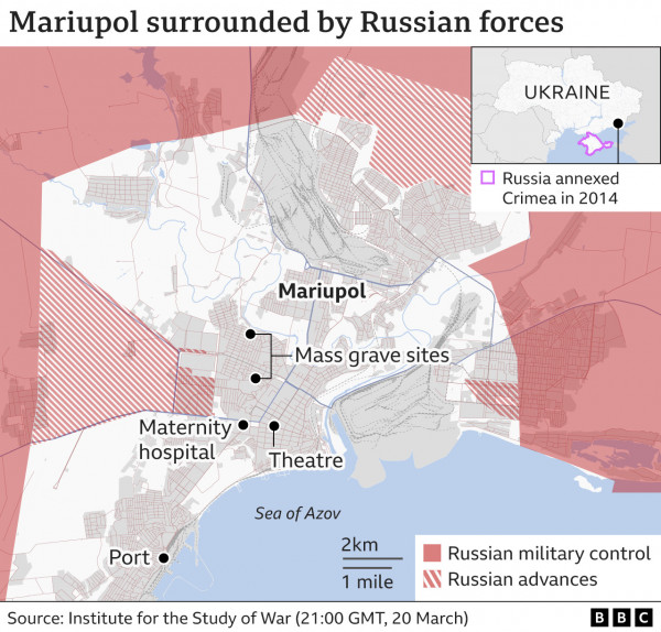 Εάν η Μαριούπολη «πέσει», τότε η Ρωσία θα είχε τον έλεγχο του 80% της ακτογραμμής της Ουκρανίας στη Μαύρη Θάλασσα – διακόπτοντας το θαλάσσιο εμπόριο και απομονώνοντάς την περαιτέρω από τον κόσμο. Αντιστεκόμενοι οι Ουκρανοί στις δυνάμεις που προωθούνται τις τελευταίες τρεις εβδομάδες, κατάφεραν να απασχολήσουν μεγάλο αριθμό ρωσικών στρατευμάτων.