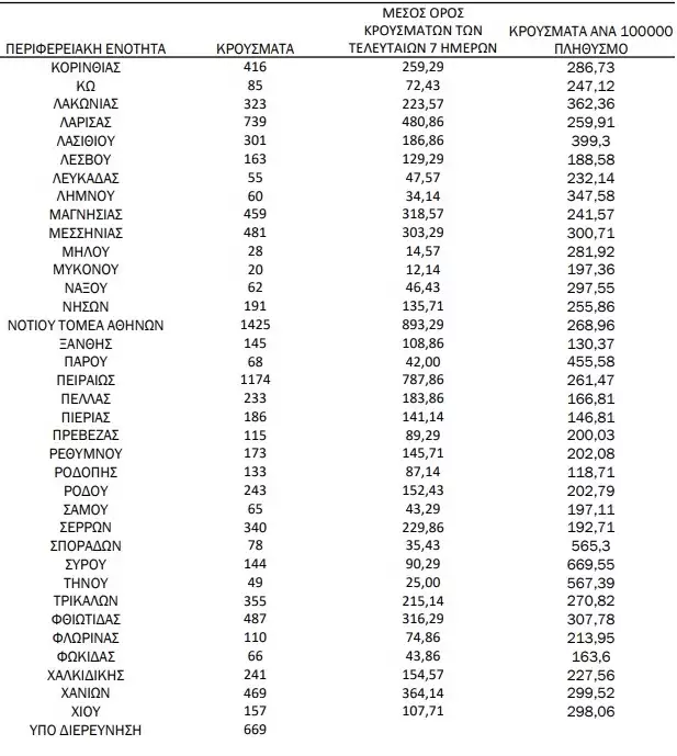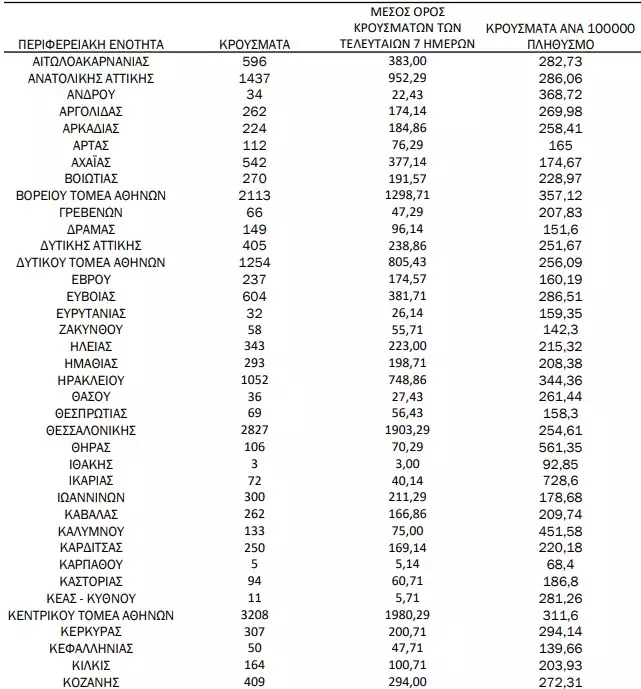 Δείτε αναλυτικά την κατανομή των κρουσμάτων ανά περιοχή: