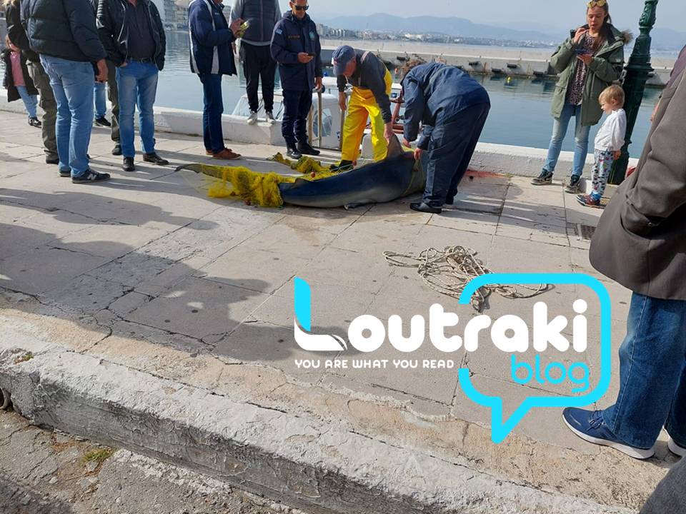 Τον τεράστιο καρχαρία έπιασε ψαράς στα δίχτυα που είχε ρίξει στον Κορινθιακό κόλπο ανοιχτά από το Λουτράκι. Έπειτα οδήγησε το θαλάσσιο κήτος στην παραλία και όπως ήταν φυσικό κίνησε το ενδιαφέρον άλλων επαγγελματιών ψαράδων, και φυσικά περαστικών.