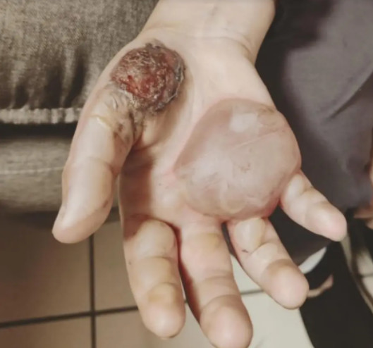 Το παιδάκι βρίσκεται σε άθλια κατάσταση παρακολουθείται από γιατρούς, ενώ εκτός από καμένα χέρια είχε γρατσουνιές στη πλάτη και τα πόδια.