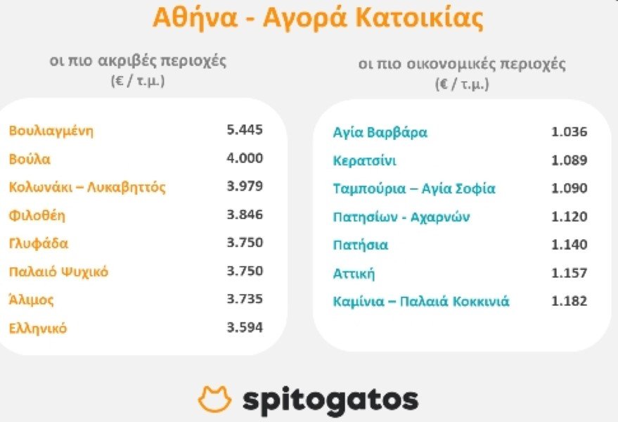 Οι ακριβότερες και οικονομικότερες περιοχές για αγορά και ενοικίαση κατοικίας στην Αθήνα