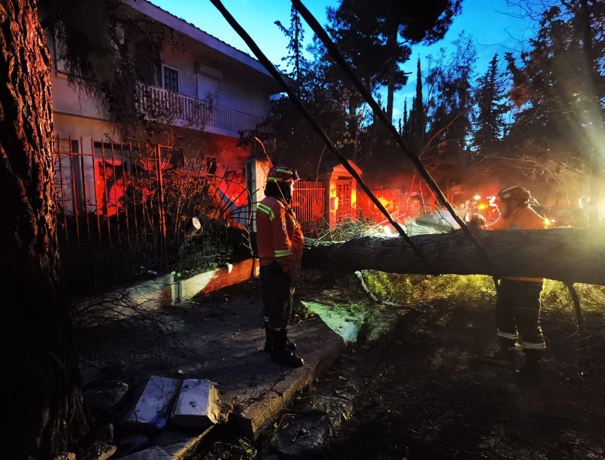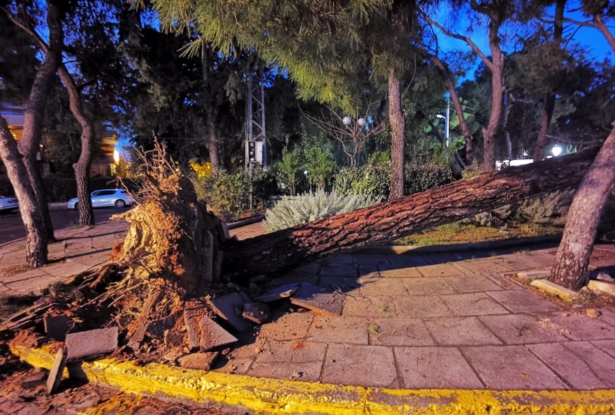 Αττική: Κομμένα δέντρα, σπασμένες κολώνες, ζημιές σε αυτοκίνητα από το μπουρίνι