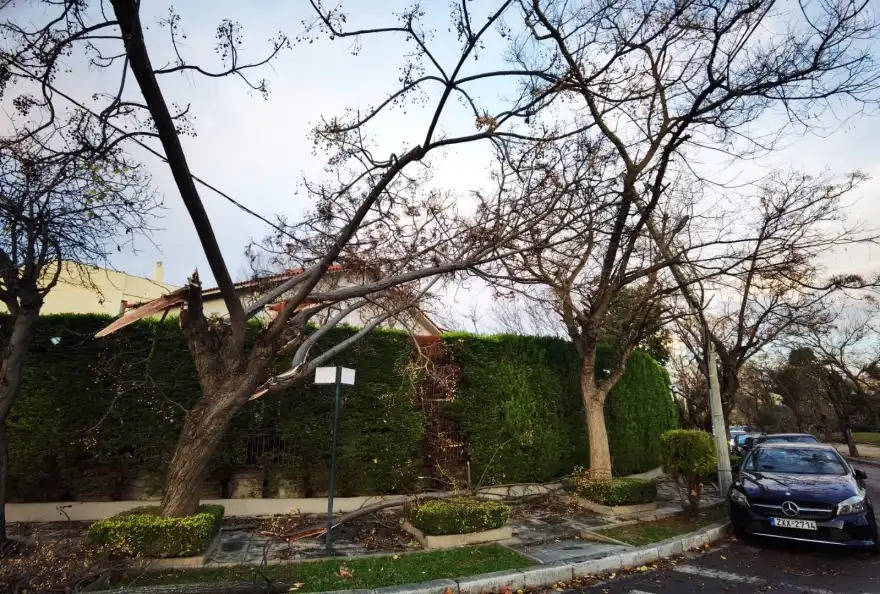 Το μεγαλύτερο χτύπημα δέχθηκαν τα βόρεια προάστια ενώ στη Φιλοθέη από τους ανέμους έπεσε μέχρι και το χριστουγεννιάτικο δέντρο.