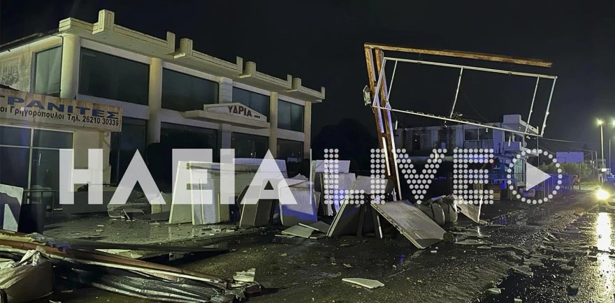 Δύσκολη νύχτα για την Ηλεία και τον Πύργο απο το πέρασμε της κακοκαιρίας στην περιοχή. Σημαντικές καταστρoφές σημειώθηκαν στην ανατολική πλευρά της πόλης μετά από ανεμοστρόβιλο που παρέσυρε τα πάντα από στέγες σπιτιών μέχρι και τα μάρμαρα μεγάλης επιχείρησης στην οδό Αλφειού.