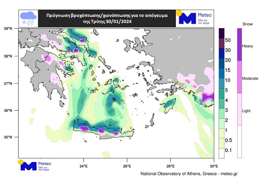 Κορυφώνεται η κακοκαιρία την Τρίτη 30 Ιανουαρίου, σύμφωνα με τα τελευταία προγνωστικά δεδομένα του meteo.gr.