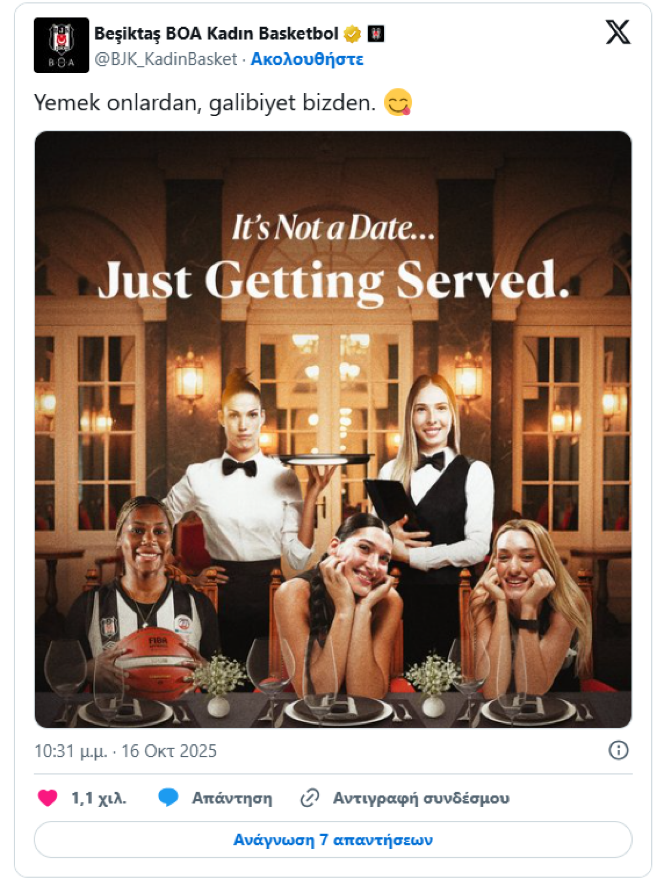 Αθηναϊκός: Προσφεύγει στη FIBA για προσβλητική ανάρτηση της Μπεσίκτας ‑ Απεικονίζει τις παίκτριές του ως σερβιτόρες