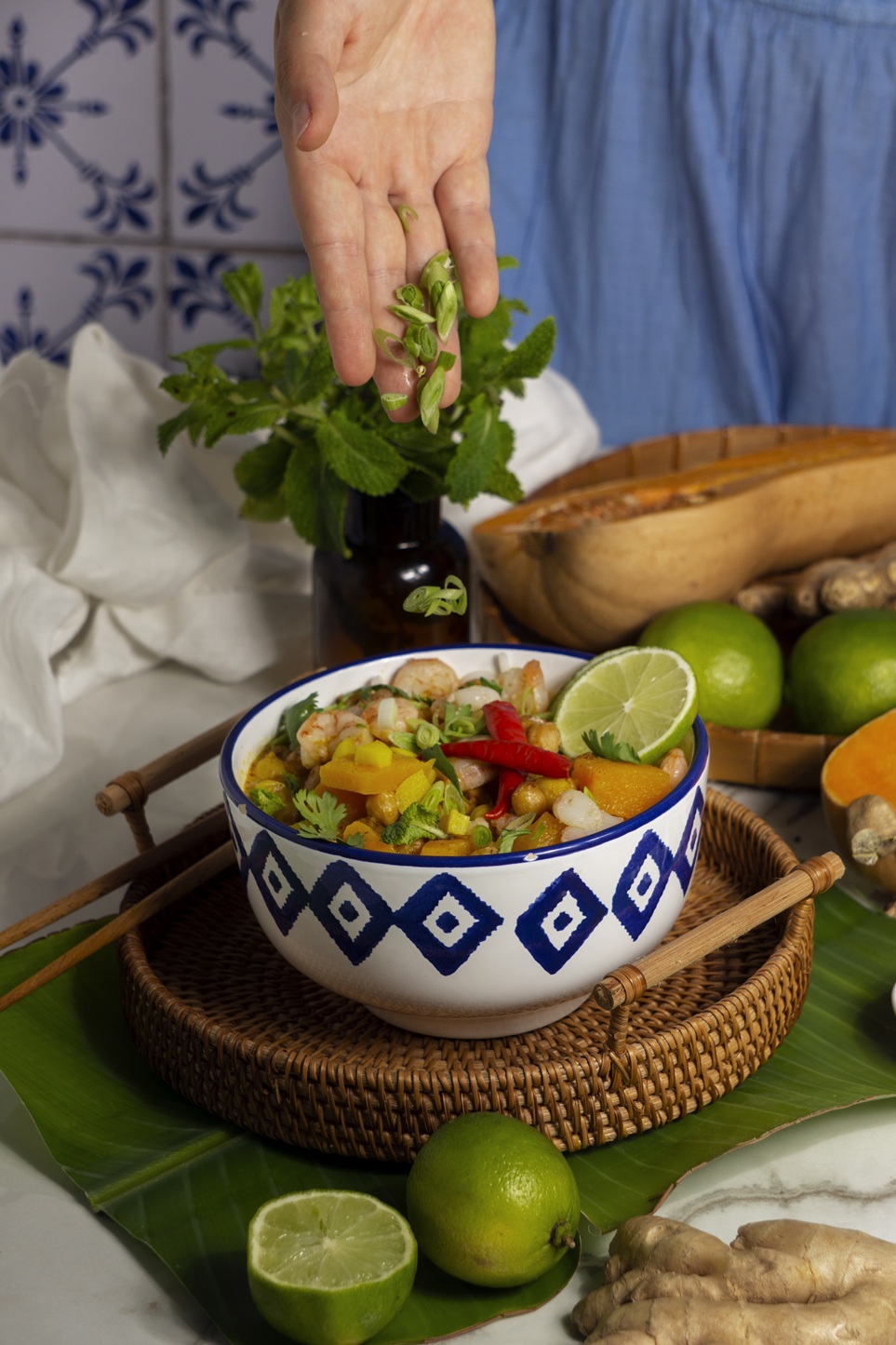 Η κολοκύθα, τρίτο στοιχείο αυτής της τριάδας, αποτελεί πηγή βιταμινών Α, Β και C και προσφέρει πολύτιμα μέταλλα όπως κάλιο και μαγνήσιο.