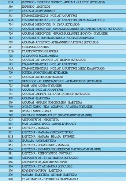 Αναλυτικά οι γραμμές που θα κυκλοφορούν κανονικά