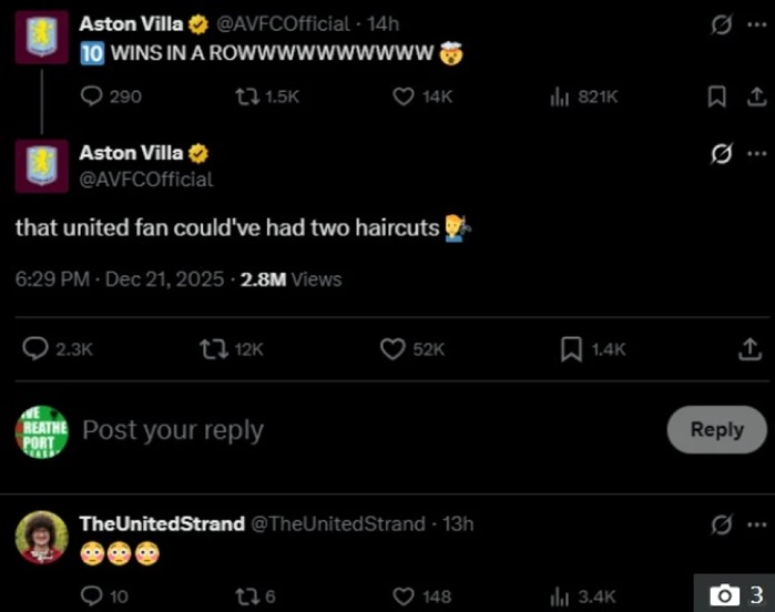 Κάτω από την ανάρτηση του συλλόγου που πανηγύριζε τις 10 συνεχόμενες νίκες, έγραψε χαρακτηριστικά: «Αυτός ο οπαδός της Γιουνάιτεντ θα μπορούσε να είχε κάνει δύο κουρέματα».