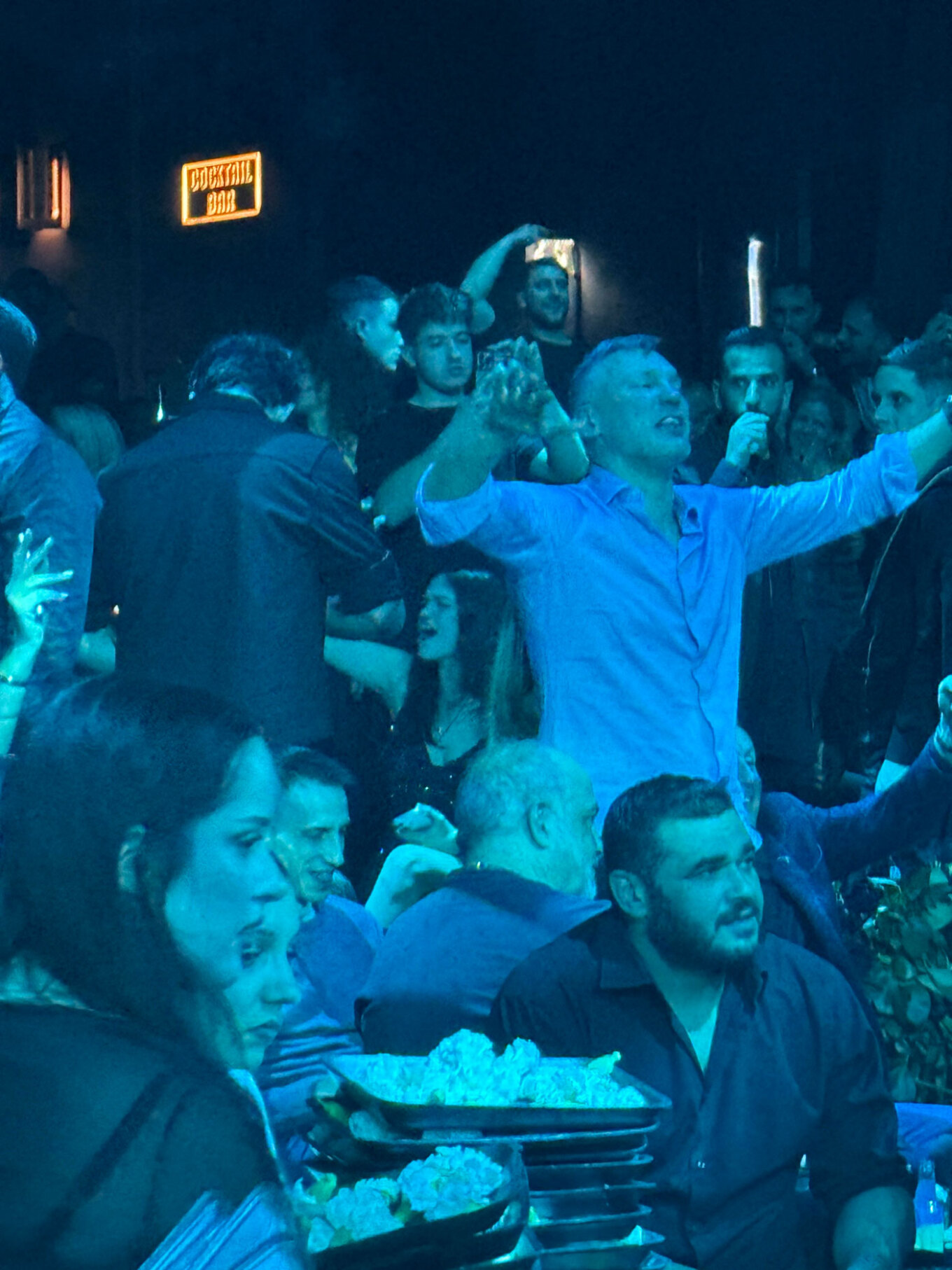 Στην συνέχεια πιο εκδηλωτικός ήταν ο Σάρας που σηκώθηκε όρθιος και χόρεψε ζεϊμπέκικο, ενώ τραγουδούσε και κάποιους στίχους από τραγούδια που έχει μάθει εδώ και χρόνια.