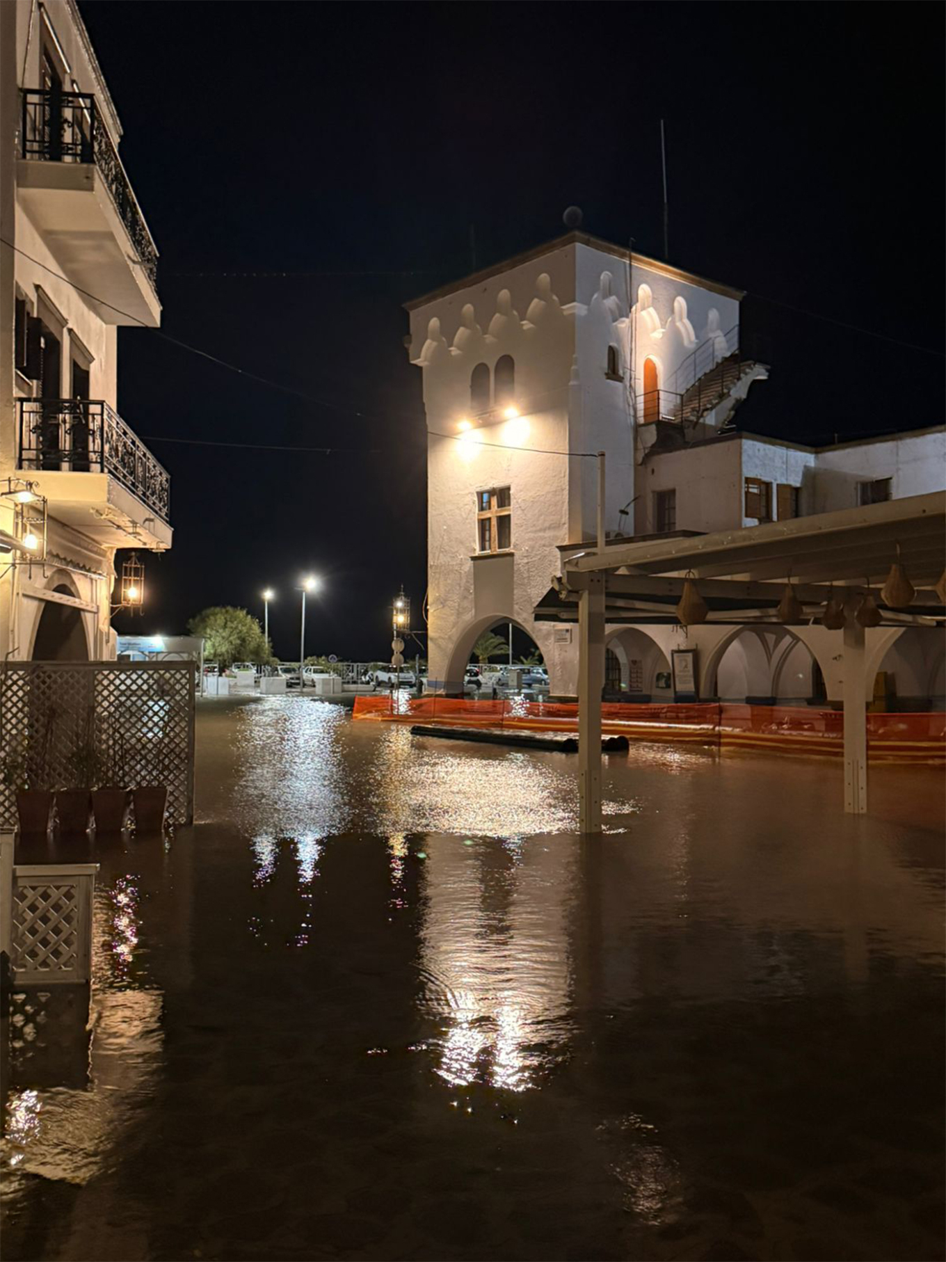 Η πλημμύρα που σημειώθηκε στο λιμάνι και στην ίδια την πλατεία -δηλαδή στα σημεία που το έργο υποτίθεται πως θα προστάτευε- ανέδειξε μια κρίσιμη παράλειψη: η μελέτη δεν είχε προβλέψει την υψομετρική διαφορά μεταξύ θάλασσας και στεριάς κατά την ανύψωση της στάθμης.