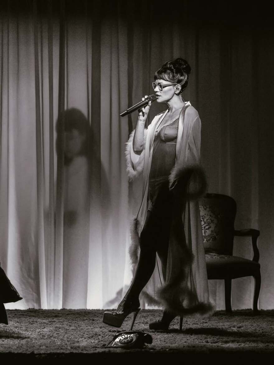 Με σιθρού φόρεμα, εσώρουχα και πουπουλένια ρόμπα βγήκε στη σκηνή η Λίλι Άλεν κατά τη διάρκεια της τελευταίας στάσης της περιοδείας της «West End Girl Tour» στο Μάντσεστερ.