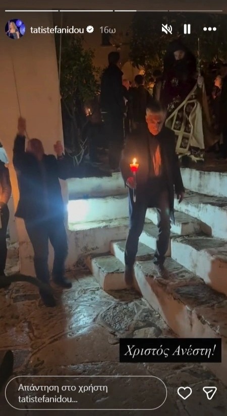 Η Τατιάνα Στεφανίδου μοιράστηκε με τους διαδικτυακούς της φίλους στιγμιότυπα από το βράδυ της Ανάστασης αποτυπώνοντας τις τοπικές παραδόσεις και το θρησκευτικό κλίμα. Μάλιστα, σε κάποια από αυτά απαθανάτισε και τον σύζυγό της, Νίκο Ευαγγελάτο την ώρα που περπατούσαν στα σοκάκια της Πάρου κρατώντας το αναστάσιμο Φως.