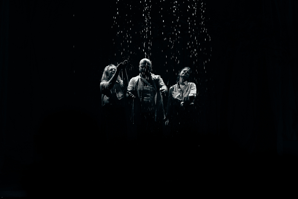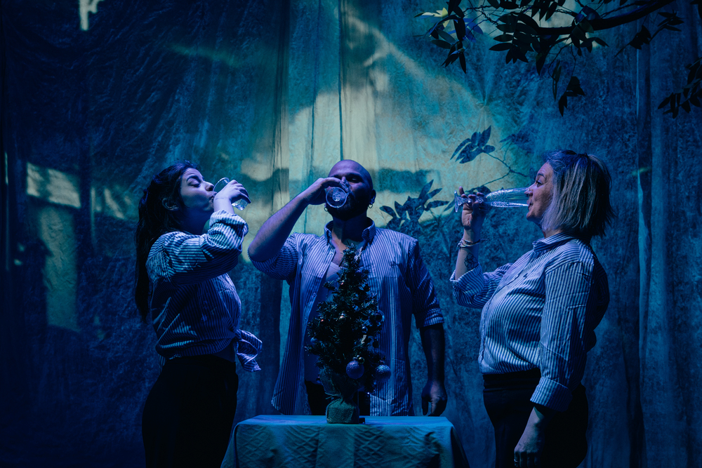 Τρεις ηθοποιοί-τρεις άνθρωποι στέκονται απέναντι στον καθρέφτη μιας κοινωνίας που έμαθε να σιωπά, να συνηθίζει, να συγχωρεί και τελικά να συνεχίζει.