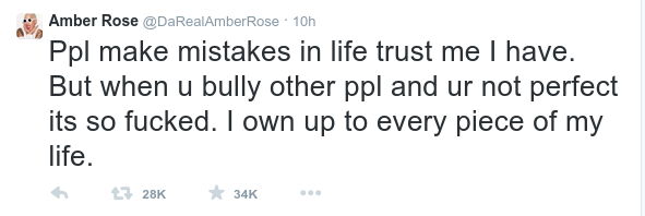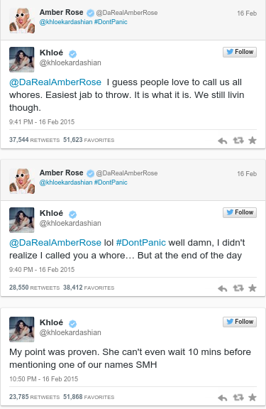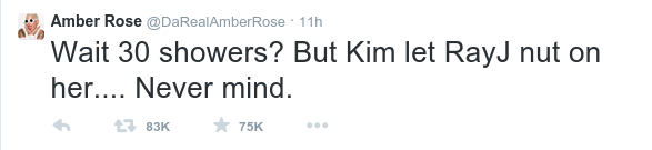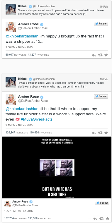 Το αποτέλεσμα βέβαια ήταν να ξεσπάσει ένας πόλεμος στο Twitter και με τον Κάνι Γουέστ, με την Amber Rose να του θυμίζει πικάντικες λεπτομέρειες από το sex tape της συζύγου του.